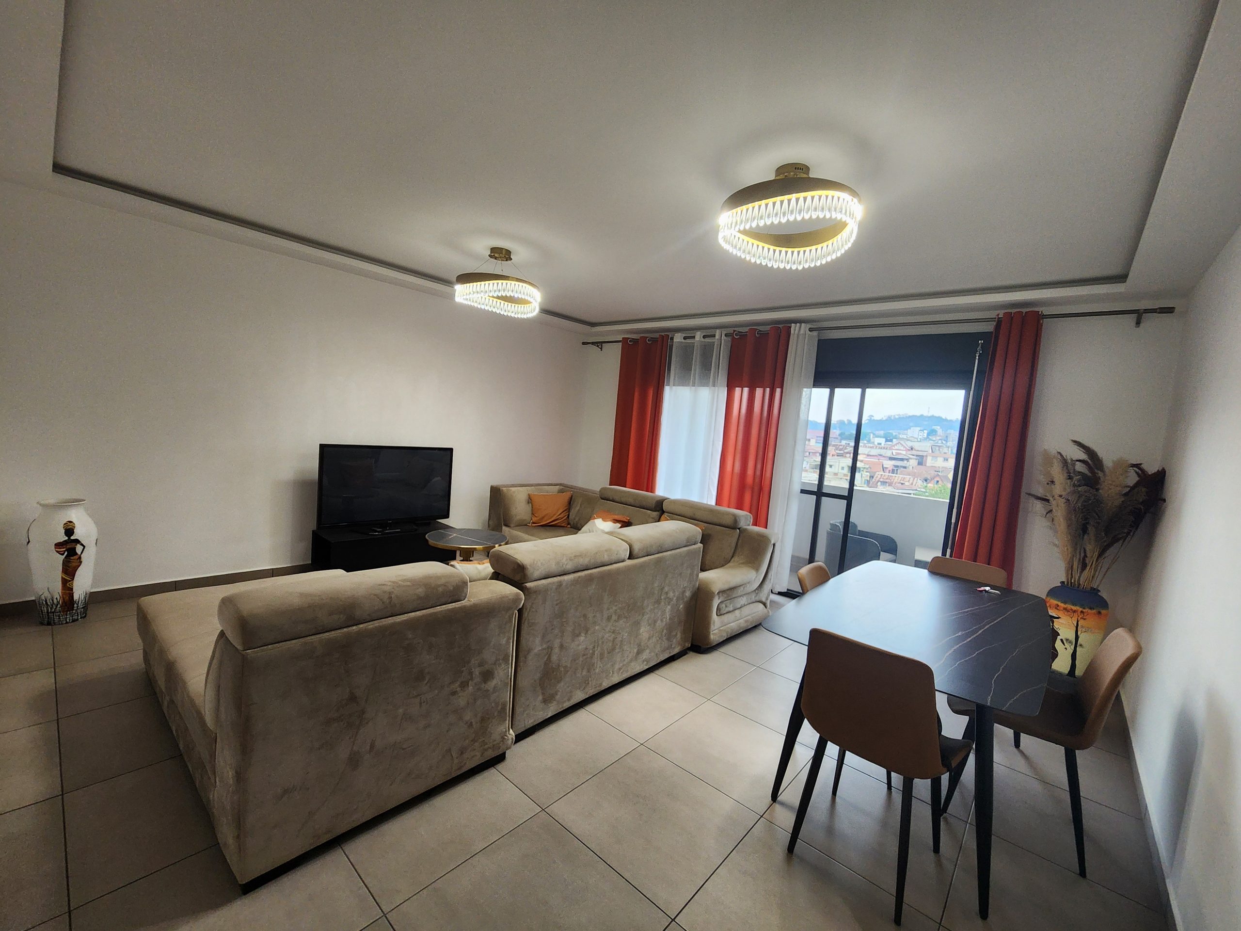 Bel appartement, neuf, meublé et équipé, sis au 2ème étage, dans un immeuble sécurisé 24h/24, 7/7, à moins de 2km du centre-ville, bénéficiant d’une belle vue, dans un quartier calme, dont voici les détails: