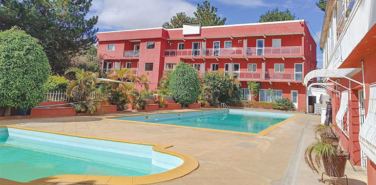 À proximité de Iavoloha, se trouve un hôtel avec 2 immeubles, offrant respectivement 1 170 m² et 360 m² de surface habitable, sur un terrain de 2 047 m², situé au bord de route comprenant :