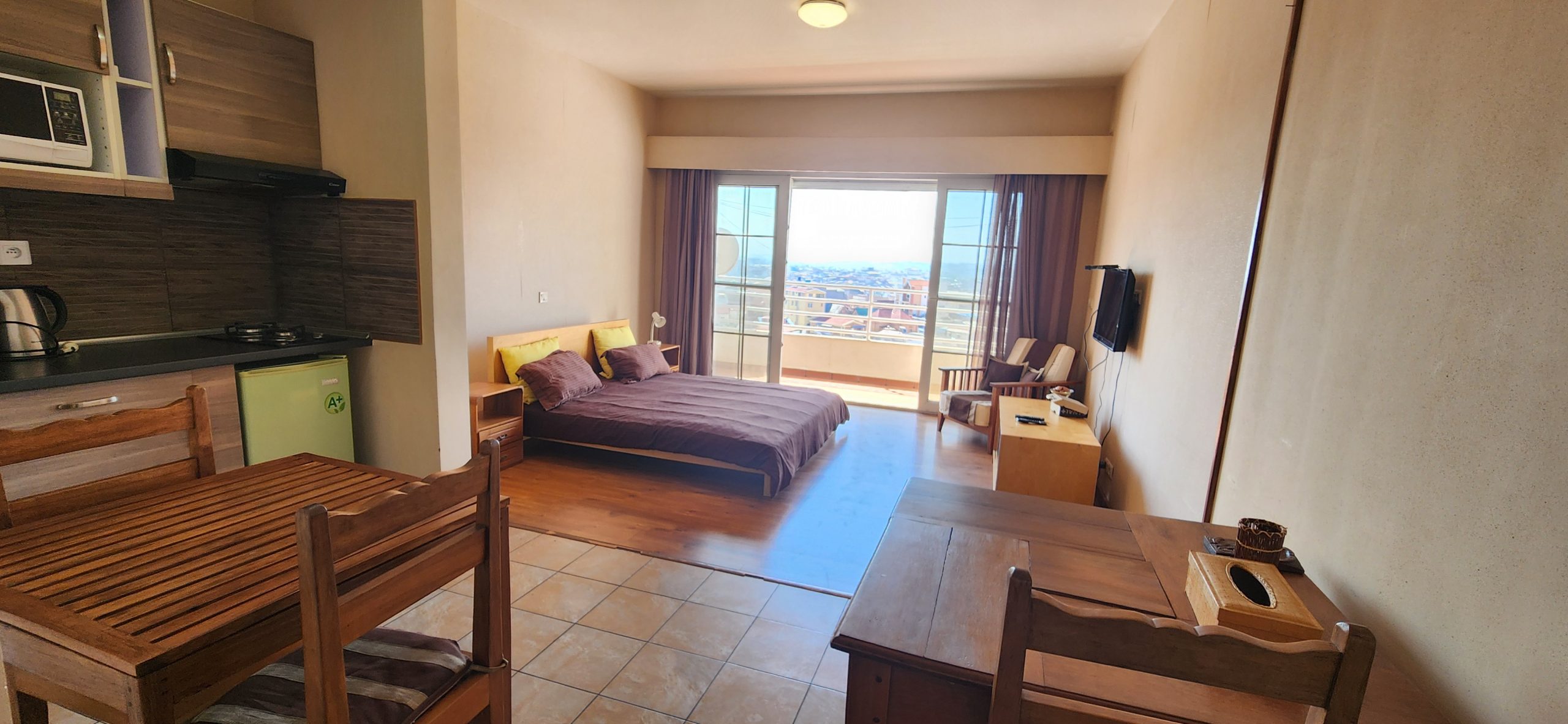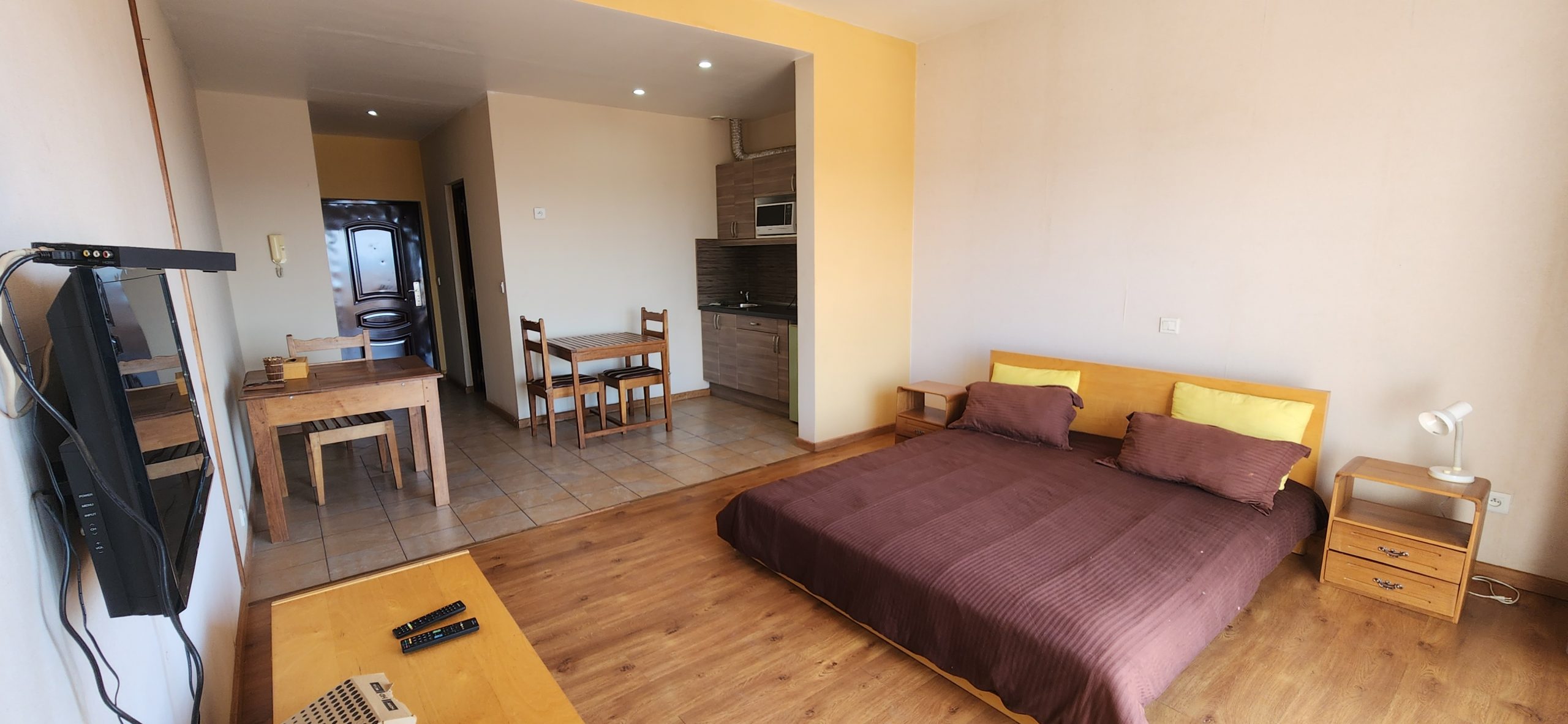 Beau studio, lumineux, meublé, équipé, au 3ème étage avec ascenseur, dans une résidence sécurisée 24h/24, validée par les Nations Unies, proche de toutes commodités (ambassades, restaurants et autres), dont voici les détails: