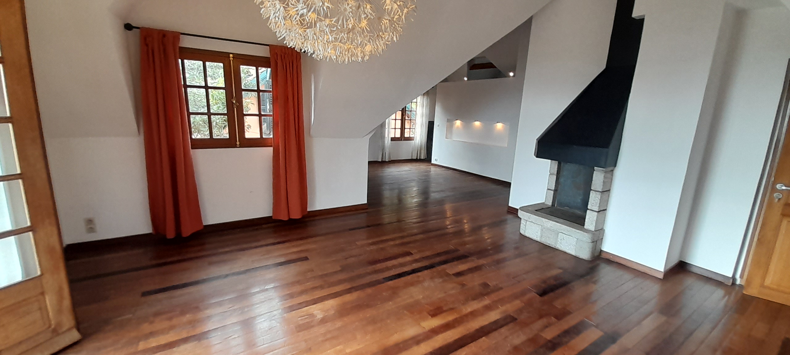 • 1 living avec grandes baies vitrées et cheminée