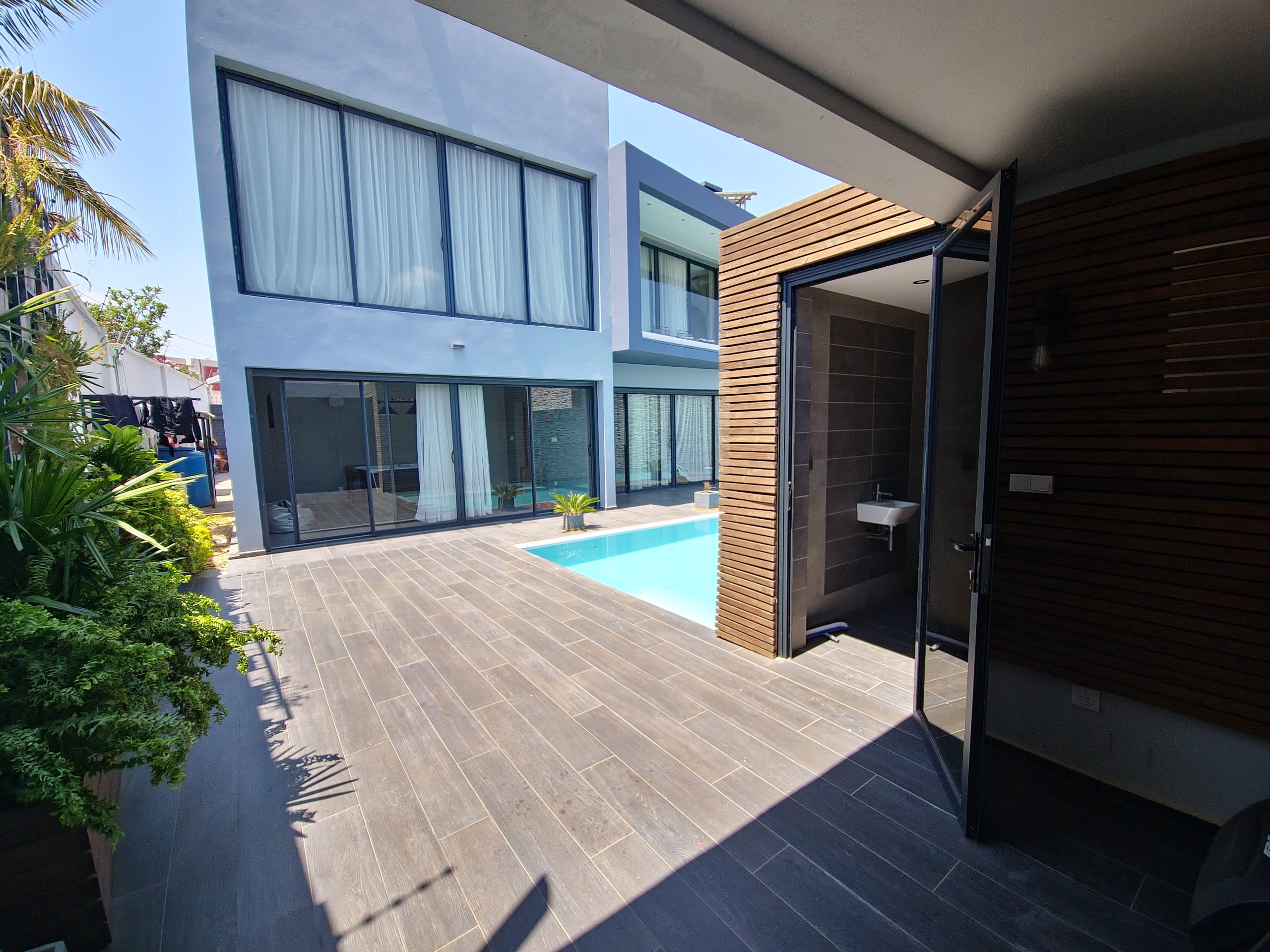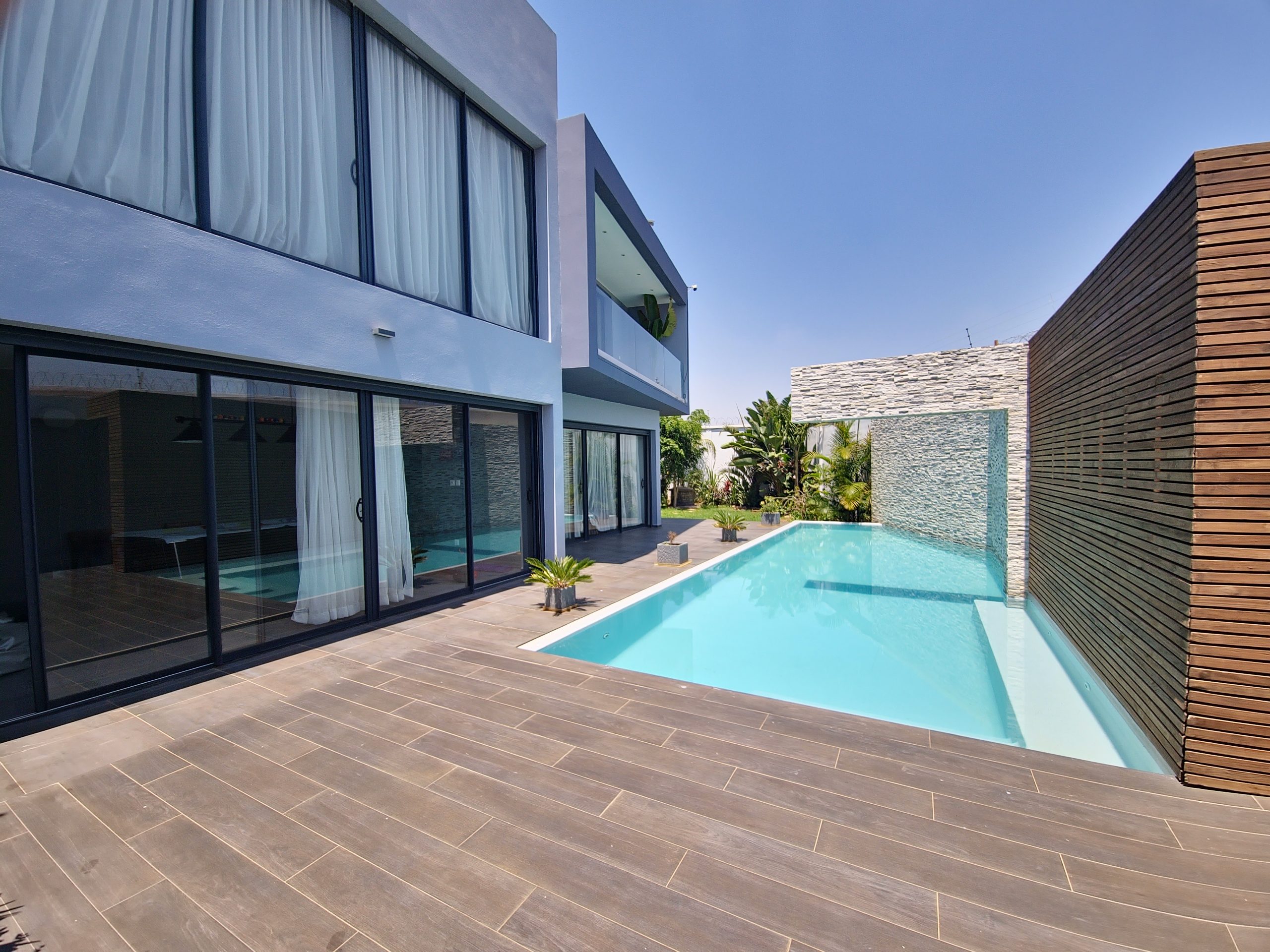Très belle villa moderne, entièrement meublée, équipée et indépendante, lumineuse, bien sécurisée, bénéficiant d’une vue exceptionnelle, dont voici les détails: