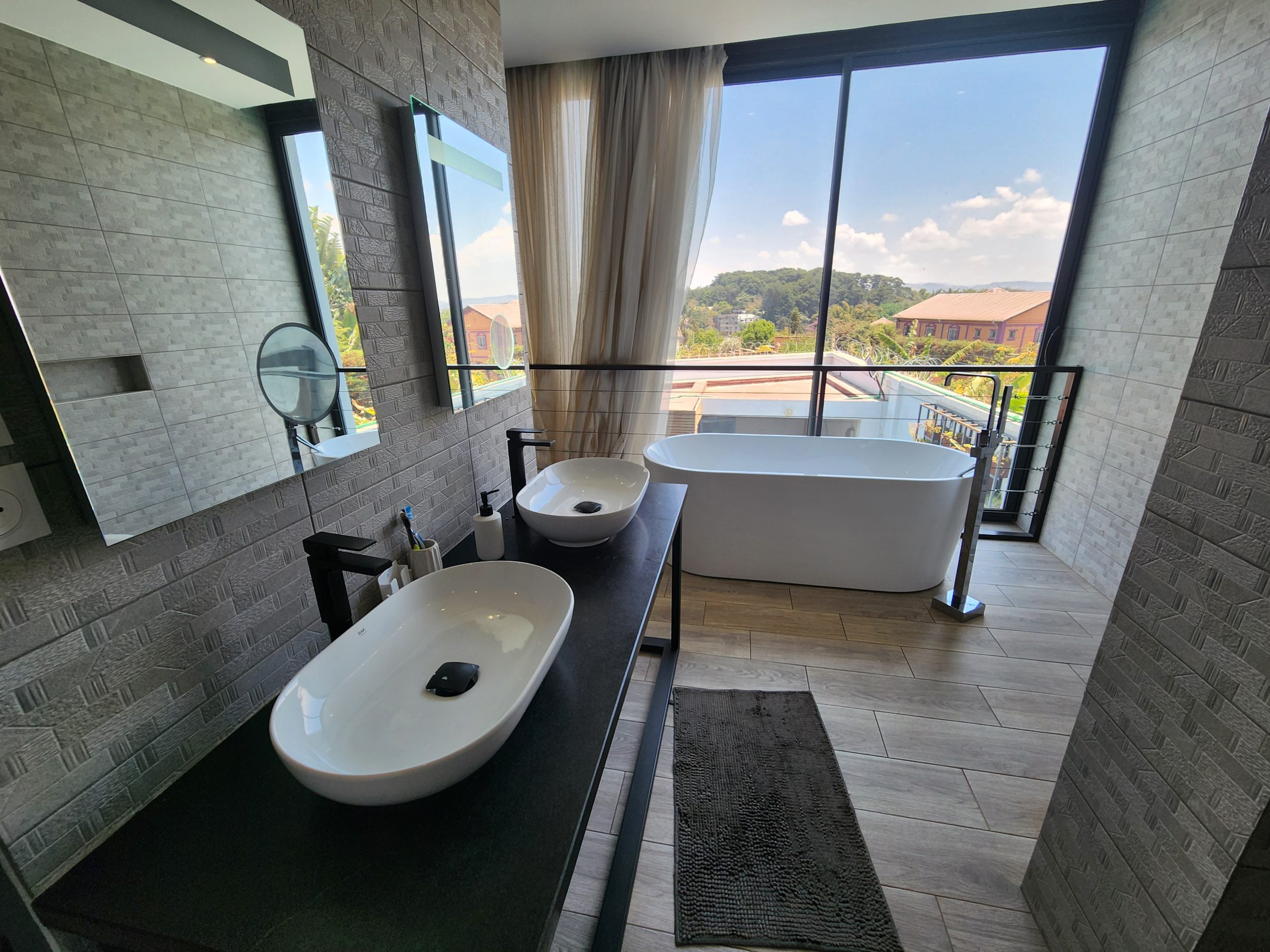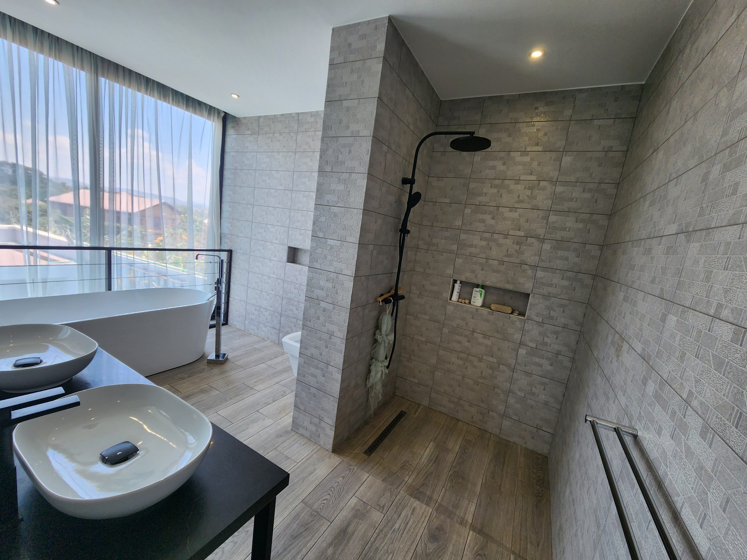 - 1 salle de bain (baignoire-douche) avec vue