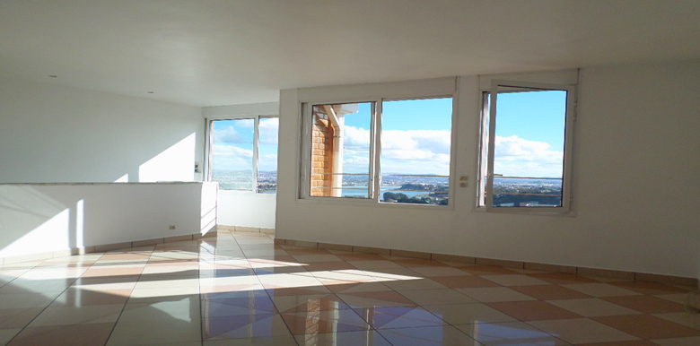 Voici en location une villa à étage T4 de 200m², avec une vue imprenable de la ville et du Marais-Masay, sur les hauteurs du quartier résidentiel d’Ambatobe, à 5 minutes du lycée français, comprenant :